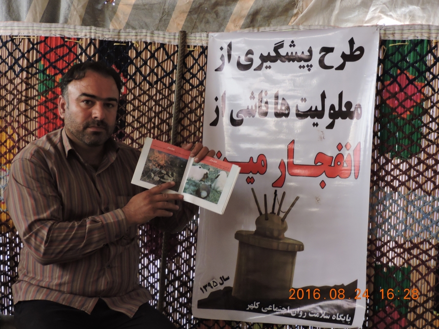 در تاریخ95/8/19 برنامه آموزش چهره به چهره پیشگیری از معلولیتهای ناشی از انفجار مین ویژه عشایر توسط پایگاه سلامت روان اجتماعی کلهر برگزار گردید