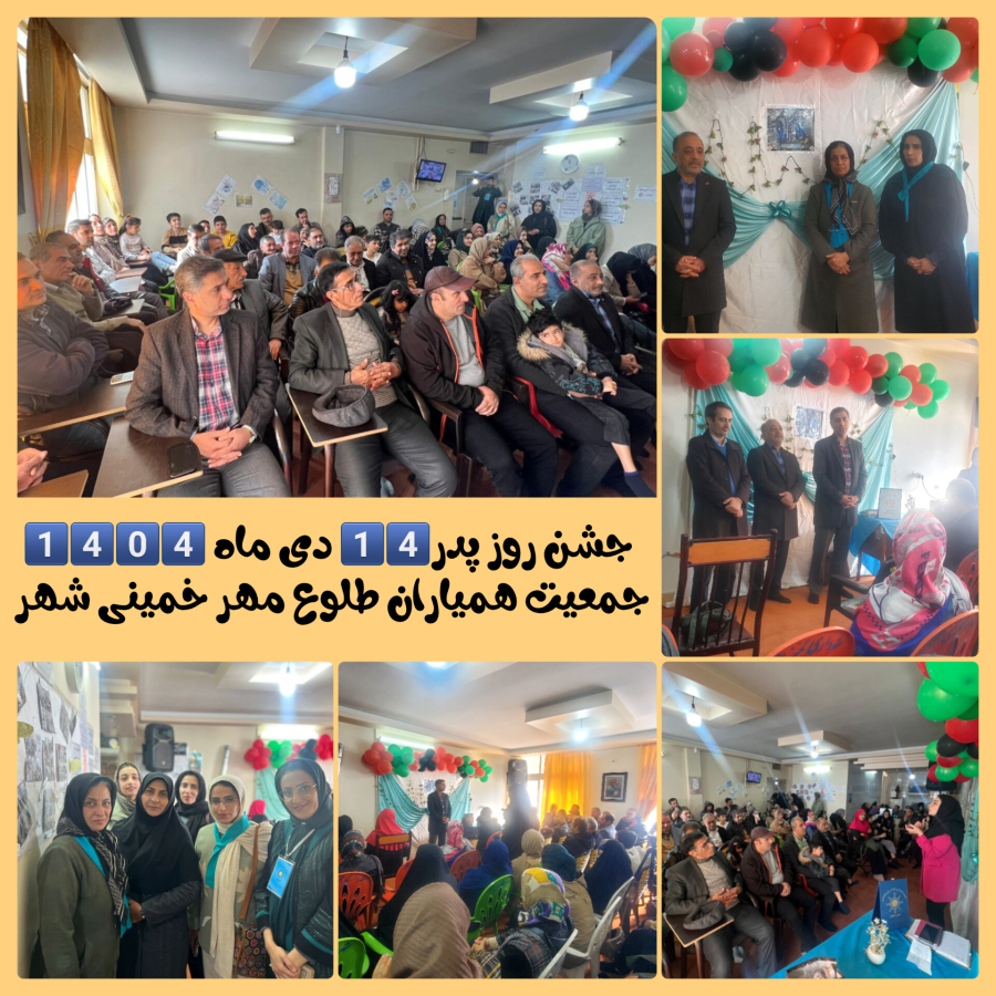 جشن میلاد امام علی علیه السلام و بزرگداشت مقام پدر در تاریخ شنبه۱۴ دی ماه ۱۴۰۴ به میزبانی جمعیت همیاران طلوع مهر خمینی شهر و همیاران محلی ارغوان و با حضور ارزشمندجناب آقای دکتر قربانی ریاست سازمان بهزیستی خمینی شهر و سرکار خانم حاج هاشمی _ شورای اسلامی شهرستان خمینی شهر وجناب آقای عقیلی _ معاون بهزیستی وجناب آقای دکتر بدیعی و سرکار خانم مهین اعلایی رئیس هیئت مدیره جمعیت همیاران طلوع مهر و ساکنان بزرگوار و بلند همت محله ارغوان ( آقایان به همراهان همسرانشان) برگزار گردید. در این برنامه با حضور خانم دکتر رخصتی و گروه همراهشان برنامه تخصصی خنده درمانی در جهت پیشگیری از آسیب های روحی و روانی و اجتماعی و همچنين بیماریهای آلزایمر و پارکینسون و..اجرا گردید.در این جشن مقدمات حضور آقایان محله در برنامه هاو فعالیت های پیشگیرانه از آسیب های اجتماعی رقم خورد که ان شاالله در آینده ای نزدیک شاهد درخشش فعالیتهای جمعیت همیاران طلوع مهر در شهرستان خمینی شهر خواهیم بود.