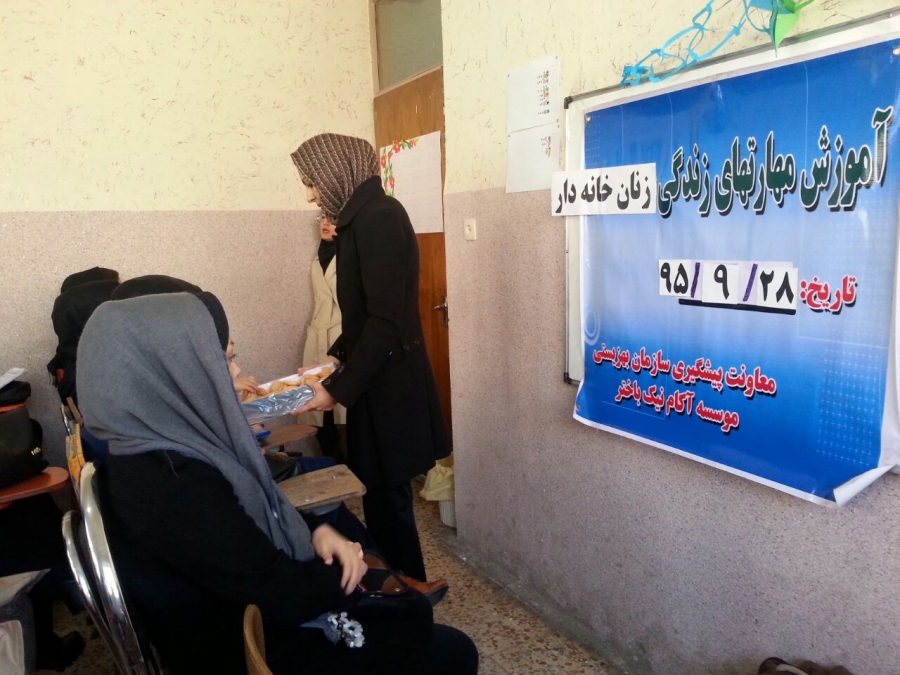 موسسه آکام نیک باختر آموزش مهارتهای زندگی زنان خانه دارموضوع تغذیه باحضورمدرس خانم حسین پور تعداد شرکت کنندگان35نفر با مدت2ساعت برگزار گردید