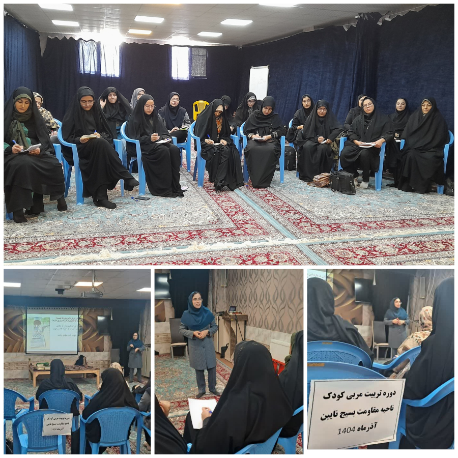 در روز پنجشنبه ۱۳ آذرماه کارگاه آموزشی تربیت مربی کودک توسط همیار کوشای نسیم زندگی نایین خانم حسن زاده در محل دارالقرآن ثقلین برگزار گردید . در این برنامه مدرس درباره ی باورهای کارآمد و نتیجه ی فرزندپروری صحیح برای ۲۰ نفر مخاطب به آموزش پرداختند.
