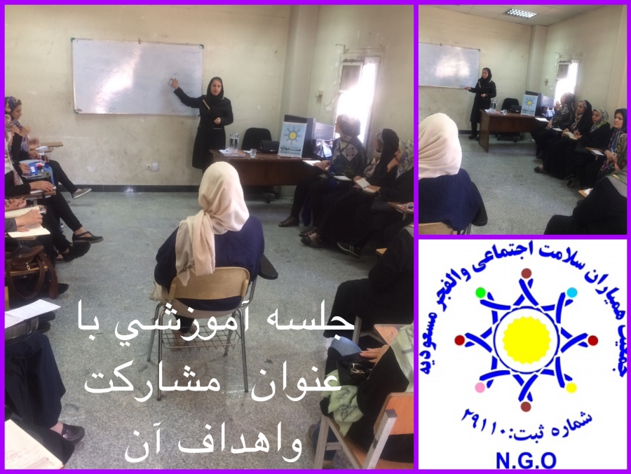جلسه آموزشي بررسي مسائل يكي إز اعضاء وارائه راهكارهاي گروهي با كارشناسي خانم پازوكي درسراي محله والفجر برگزار گرديد. تشكيل گروه هاي داوطلب درزمينه هاي مورد علاقه مانند درآمد زايي،بازاريابي،افزايش سرانه مطالعه ،آموزش زبان انگليسي،كمك به افراد ناتوان ،تفريح ونشاط،پيشگيري إز ديابت واعتياد برنامه دیگری بود که در این روز انجام گرفت.ابتدا توضيحاتی راجع به اهداف گروه انجام گرفت و سپس مسؤل هرگروه مشخص شد.
