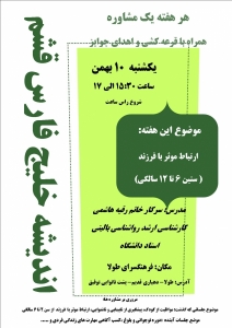 هر هفته ، یک مشاورهاندیشه خلیج فارس قشم و راه آرام تربیت برگزرار می کنند:سمینار: اعتیاد در کودکان و نوجوانانمدرس: سرکار خانم رقیه هاشمی- کارشناسی ارشد روانشناسی بالینی- ...
