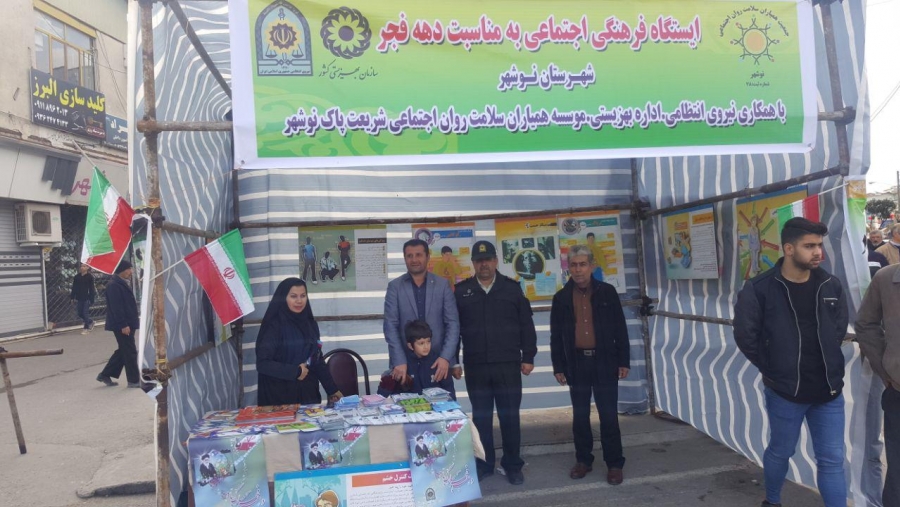 بازدید رییس پلیس ، رییس اداره ی بهزیستی ، مسئولین اداری و مردم شهرستان نوشهر از نمایشگاه همیاران نوشهر در مسیر راه پیمایی 22 بهمن ماه