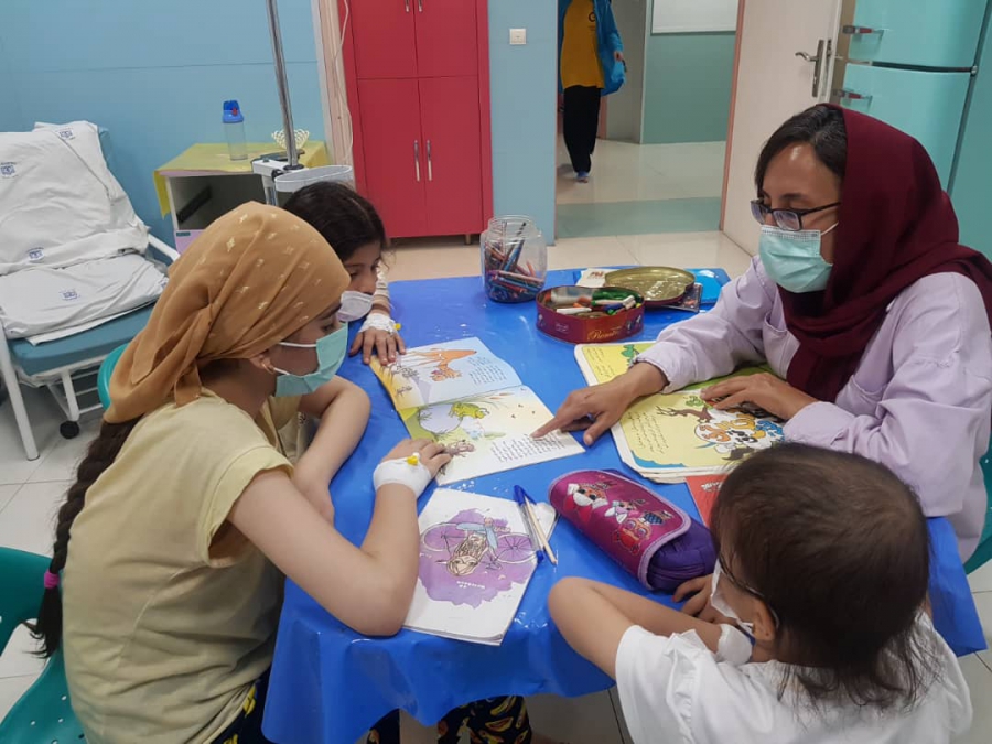 برنامه قصه خوانی و نقاشی برای کودکان بستری در بیمارستان قدس قزوین توسط موسسه همیاران سلامت روان مینودر